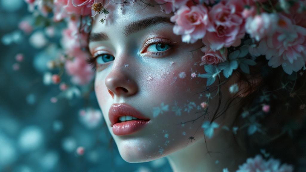 - Styling and makeup serve as sculptural forms reshaping facial features